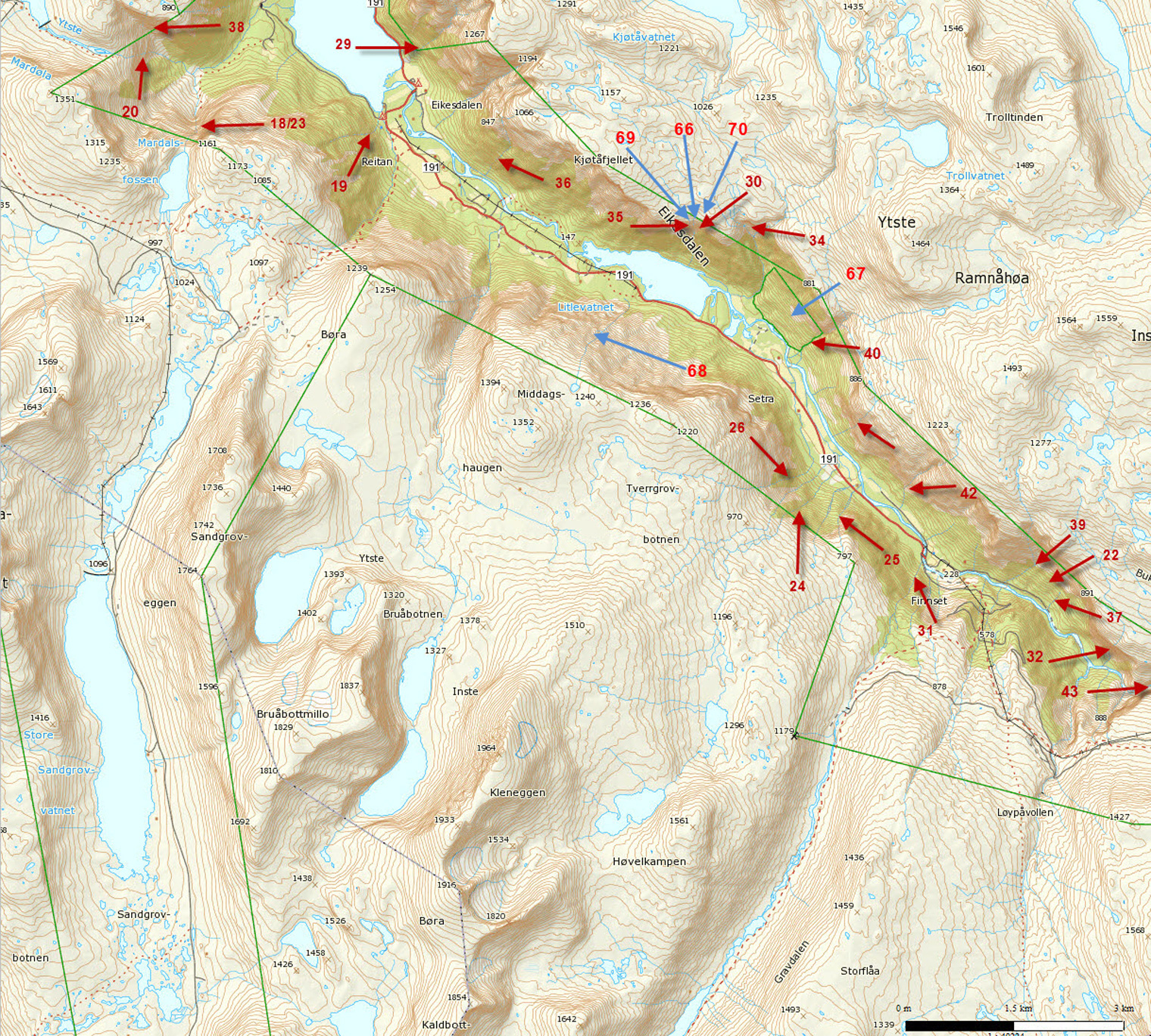 Sida den spede start i 1980 og fram til og med februar 2026, er det registrert 70 ruter i området. Berre vinteren 2009/2010 vart det klatra 19 nye linjer.