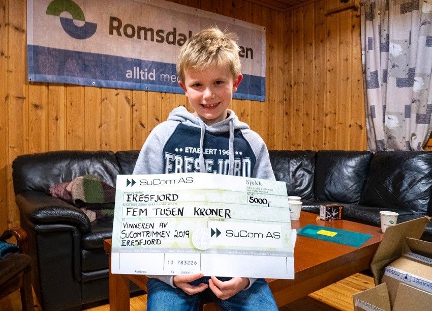 Den heldige uttrekte vinnaren av Sucomtrimmen vart Ingunn Nauste Hamre. Kjekt å få ein sjekk på kr.5000,-