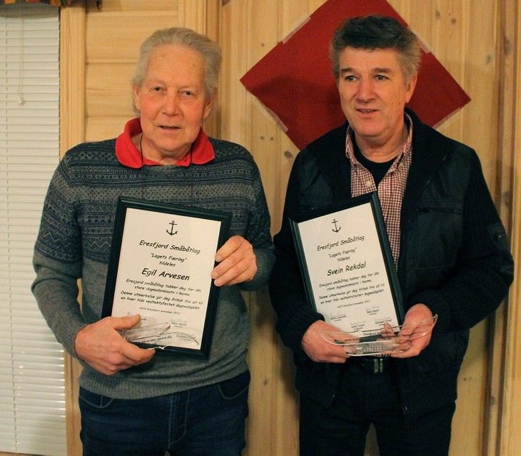 Eresfjord Småbåtlags nyinnstiftede utmerkelse "Lagets færing", er tildelt Svein Rekdal og Egil Arvesen.