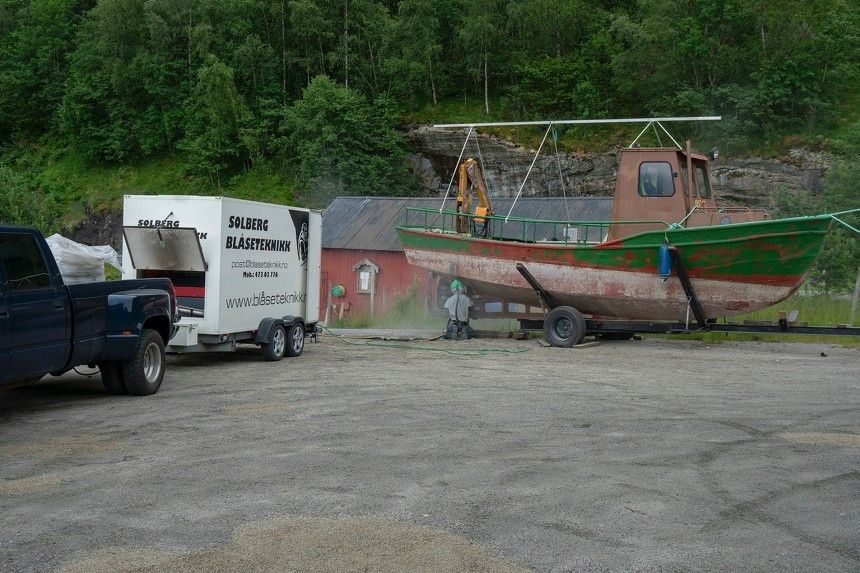 Ny runde med pussing av stålbåten Paulus, skraping og høgtrykkspyling. Den skal også primast og få eit nytt strtøk maling. Ja styrhuset får ny farge. Forrige gong båten var på land og vart pussa var i 2019.